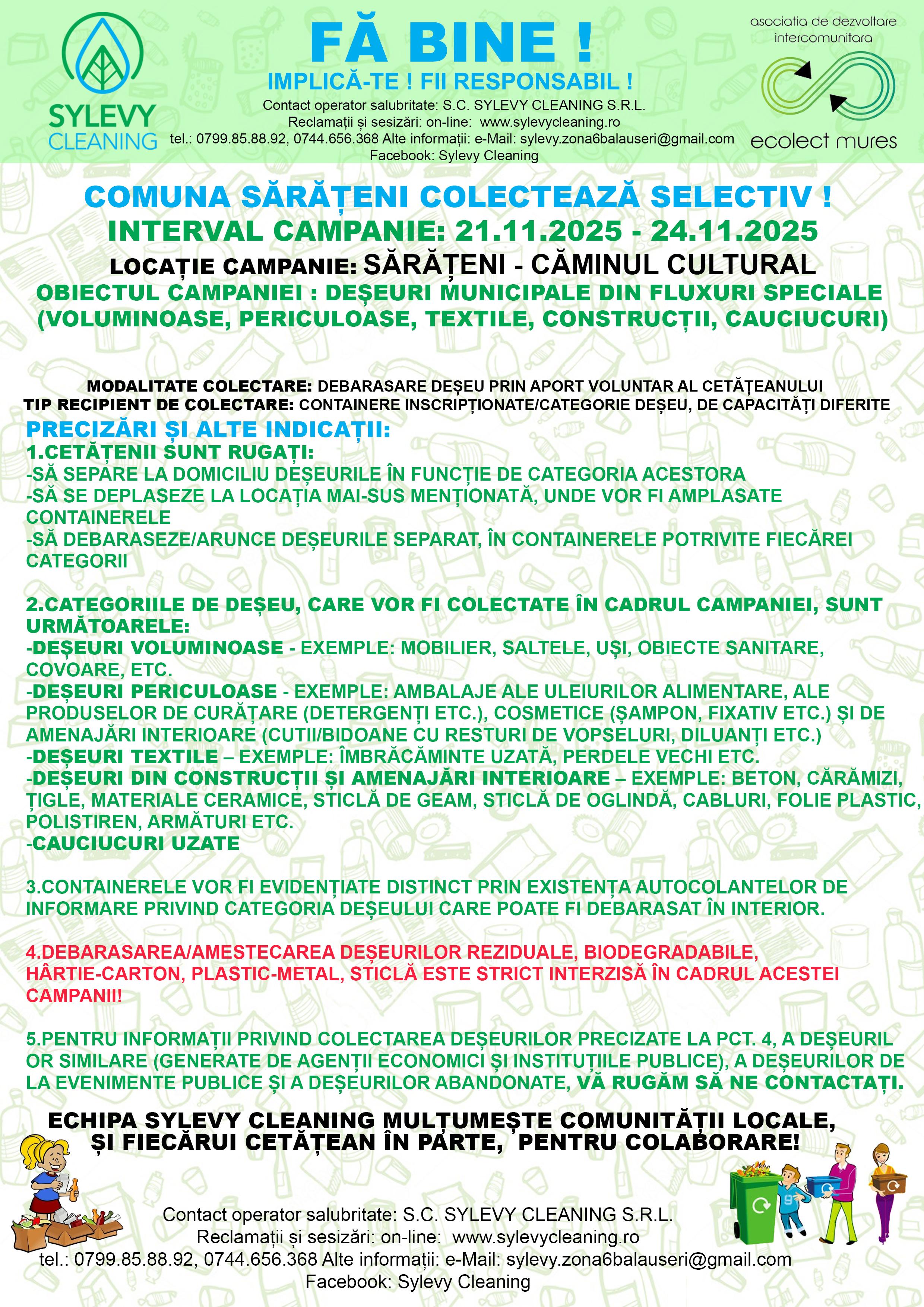 Anunt privind colectarea deseurilor voluminoase, textile in perioada 21 - 24.11.2025 - RO